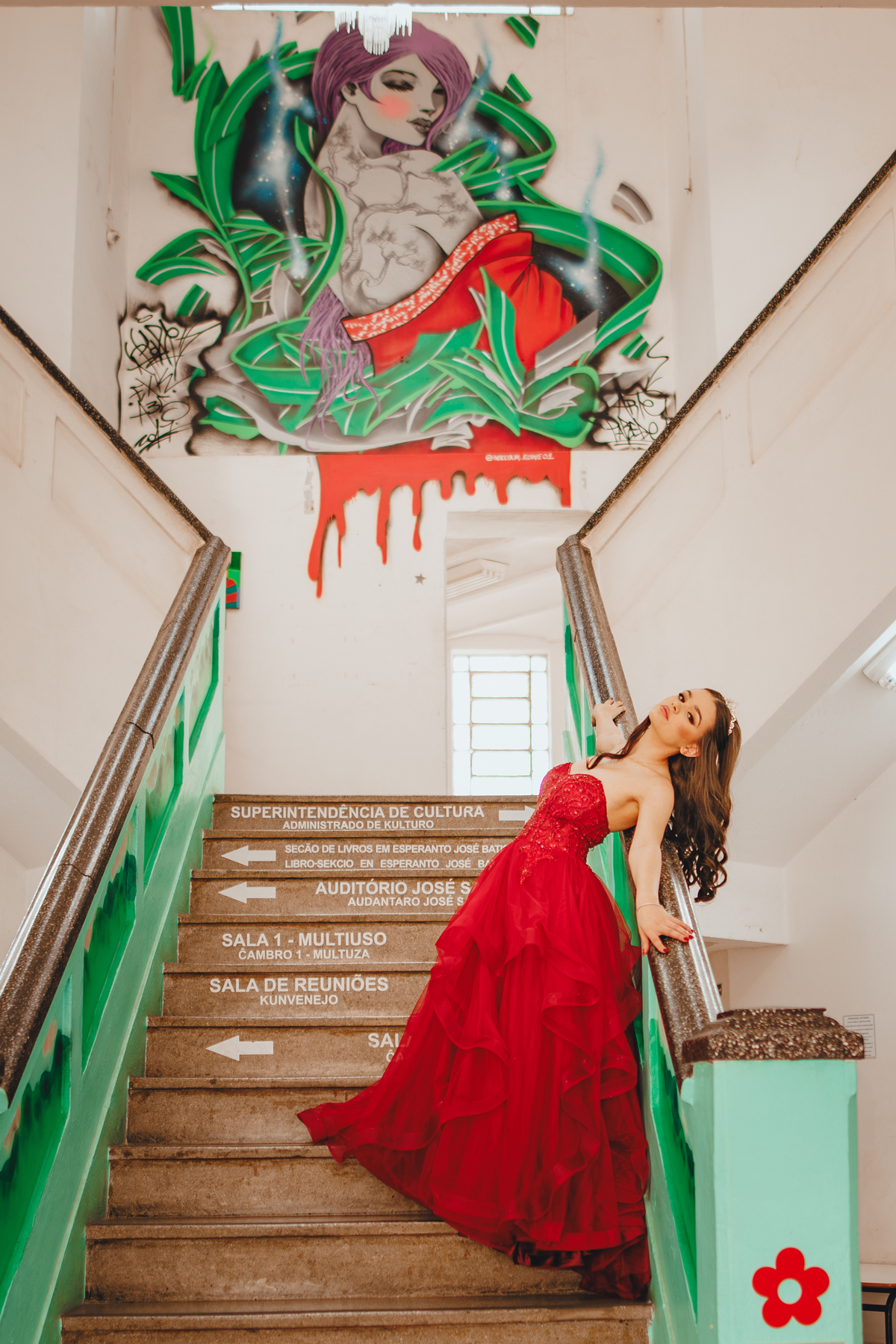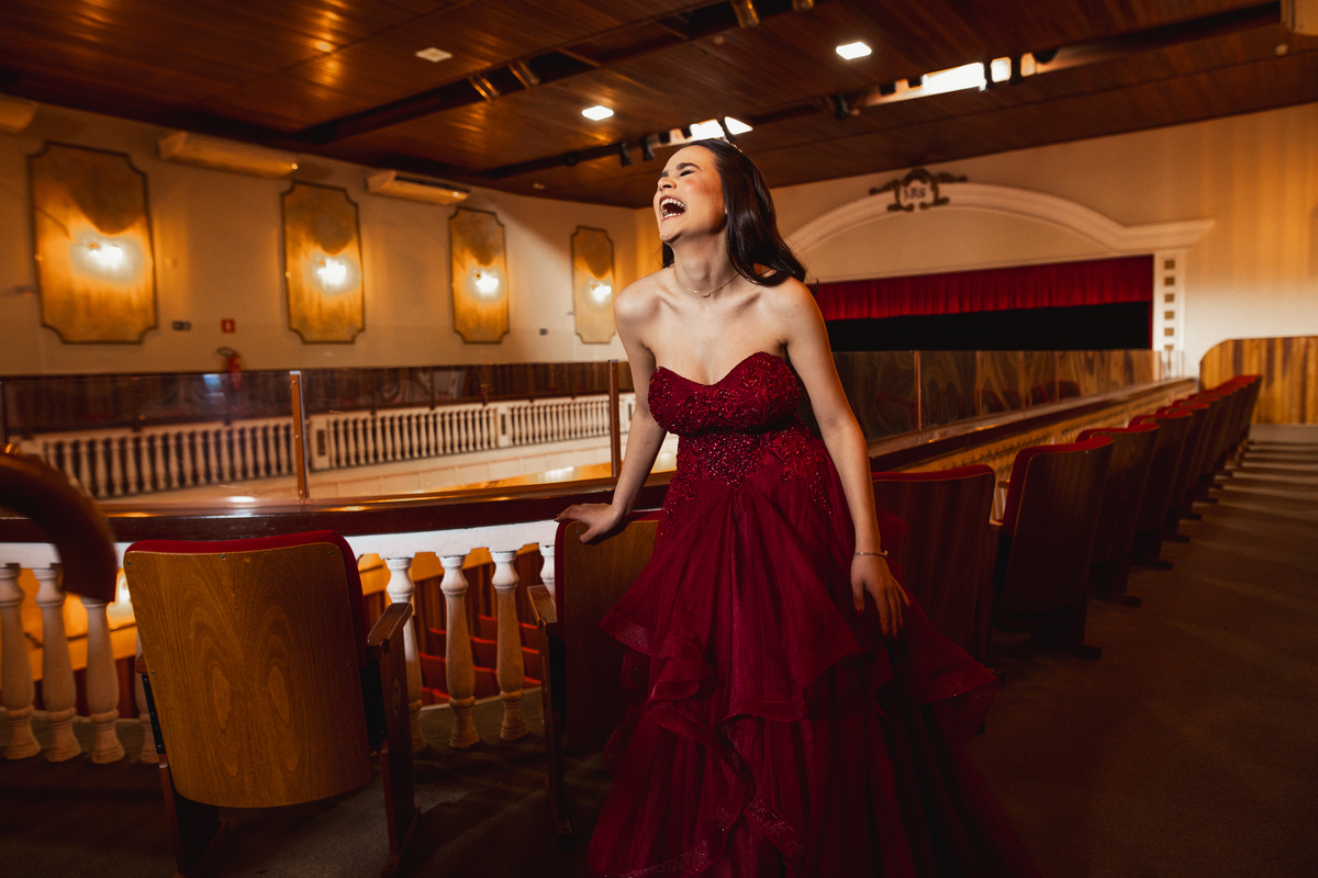 O Teatro Municipal trouxe o charme e a grandiosidade das grandes histórias, enquanto a Biblioteca Municipal completou o ensaio com um toque artístico e poético — perfeito para uma jovem sonhadora, cheia de atitude e sensibilidade.
