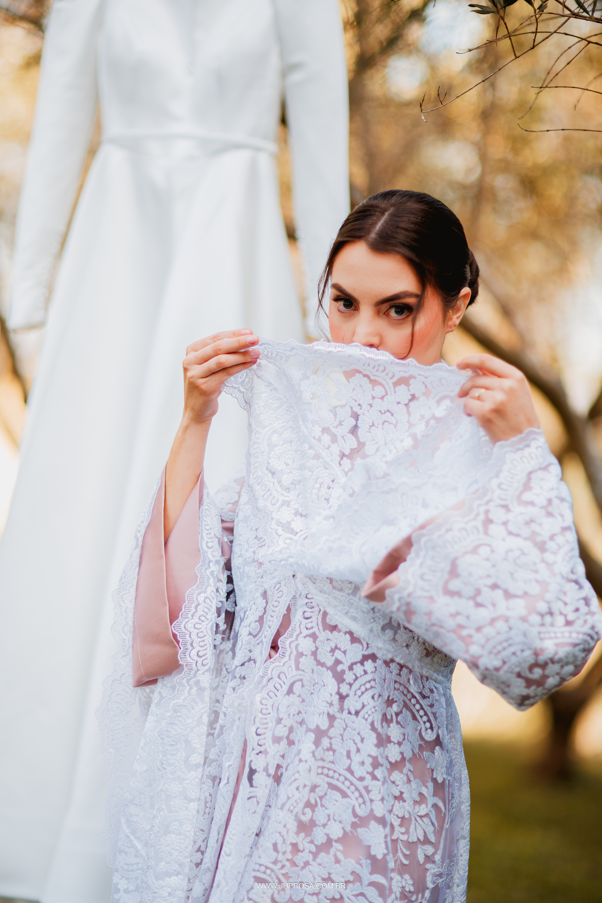 O making of aconteceu nos Olivais Santa Clara, cenário perfeito para a delicadeza do vestido inspirado no modelo da avó da noiva, criado com todo carinho pelo The Hall Ateliê.