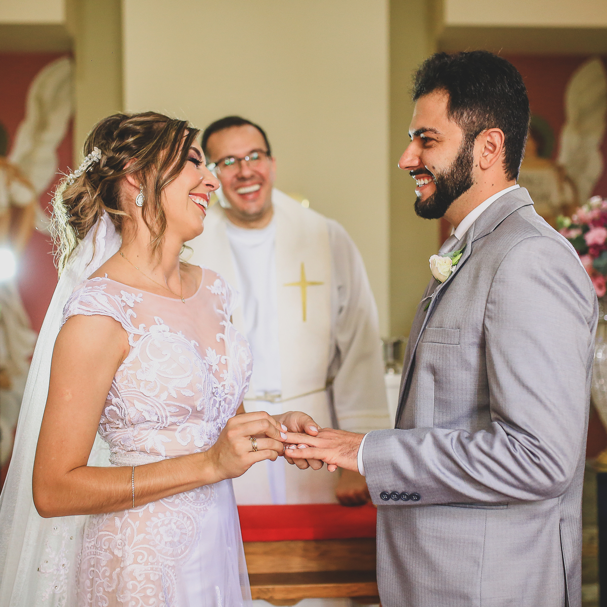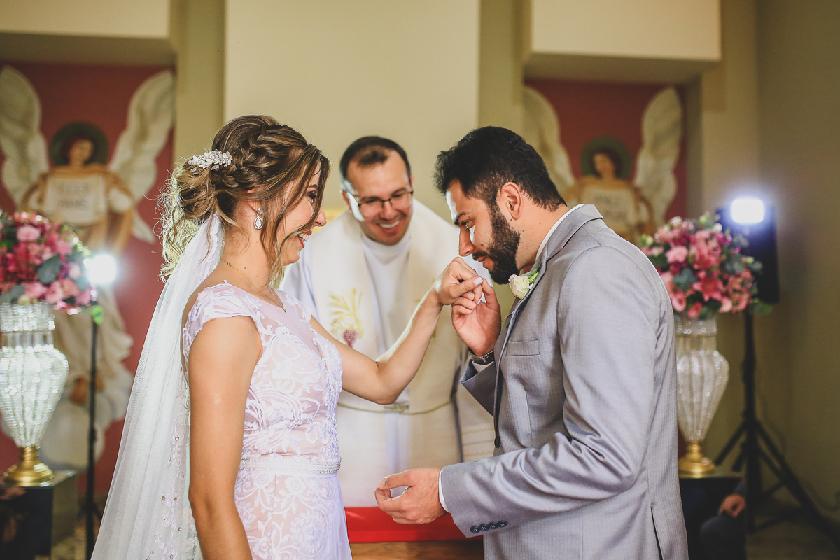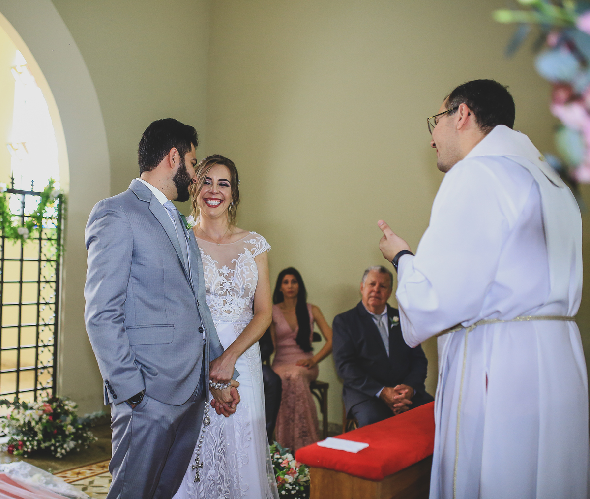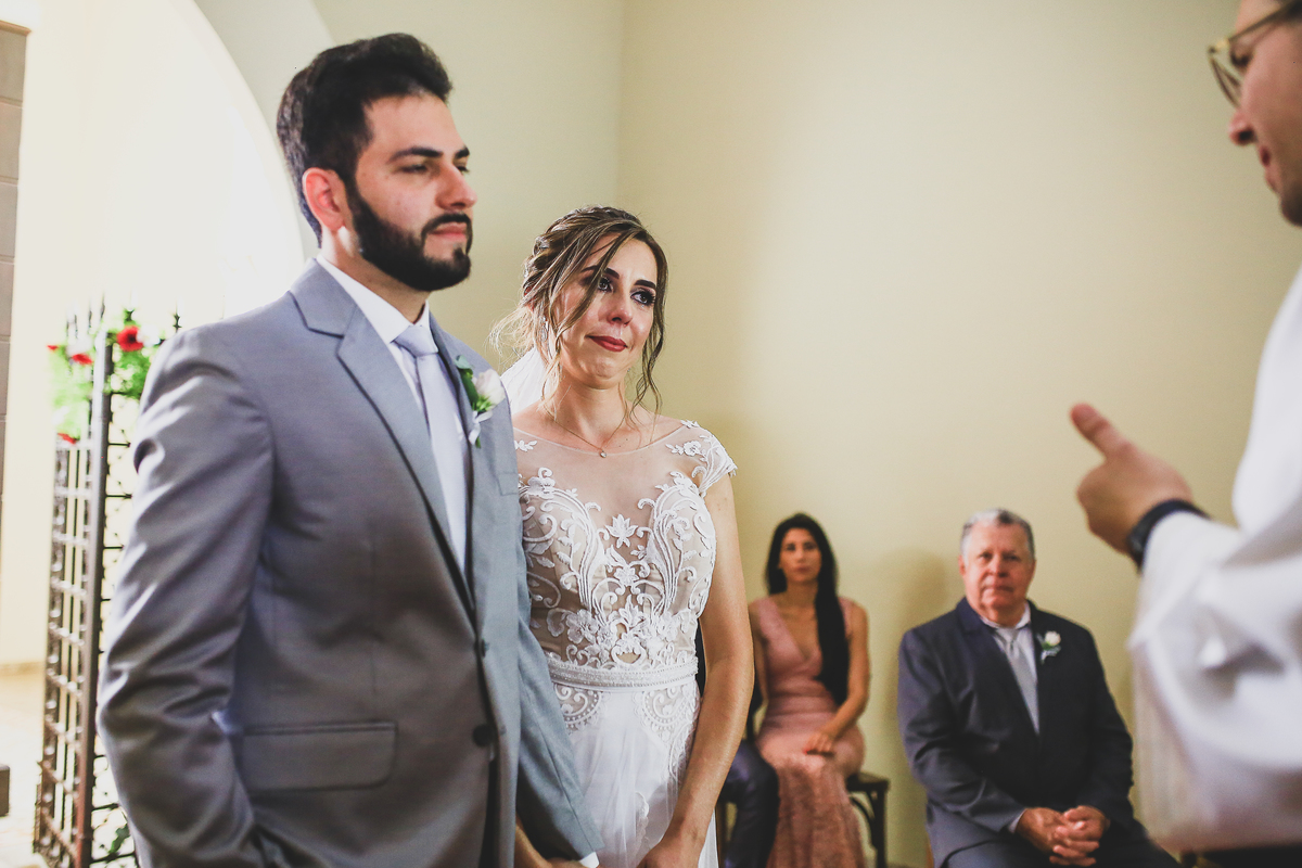Conheci a Thamires e o Danilo dois meses antes do casamento e como estamos em meio a uma pandemia eles optaram pelo casamento intimista que consiste em ter a presença dos pais e dos irmãos, nesta belíssima cerimonia com 8 pessoas a assistir, eu confesso que foi sim um dos casamentos mais lindos que eu já fiz, teve choro, emoção de montão.