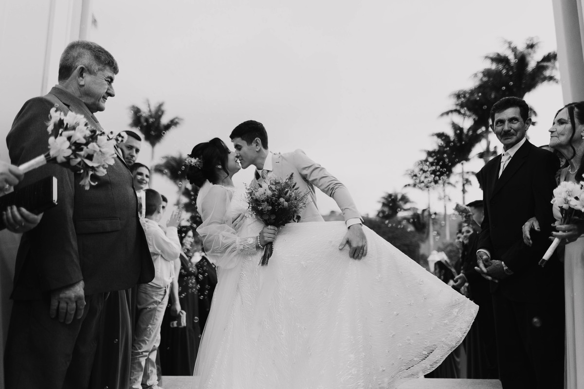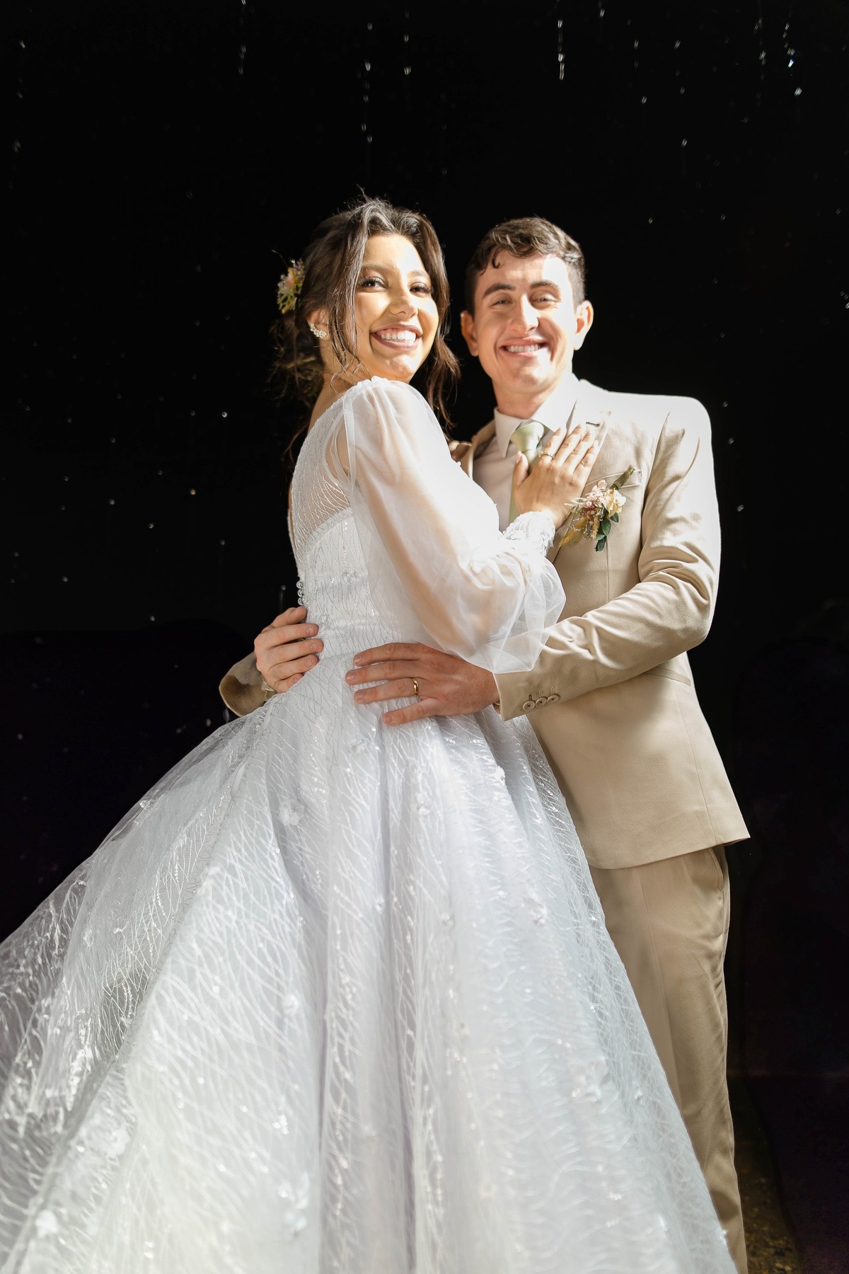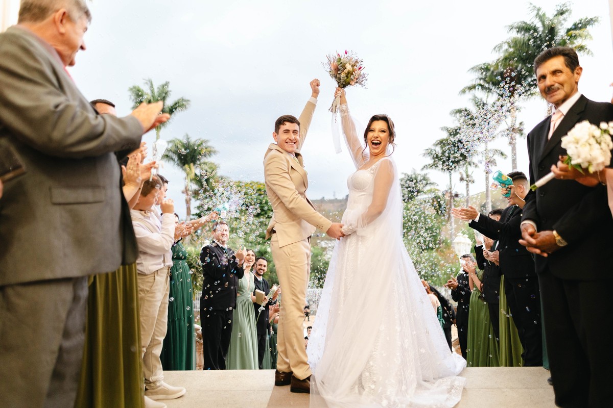 As gotas de chuva transformaram o cenário em algo ainda mais encantador logo após a cerimônia, criando fotos inesquecíveis e cheias de emoção.