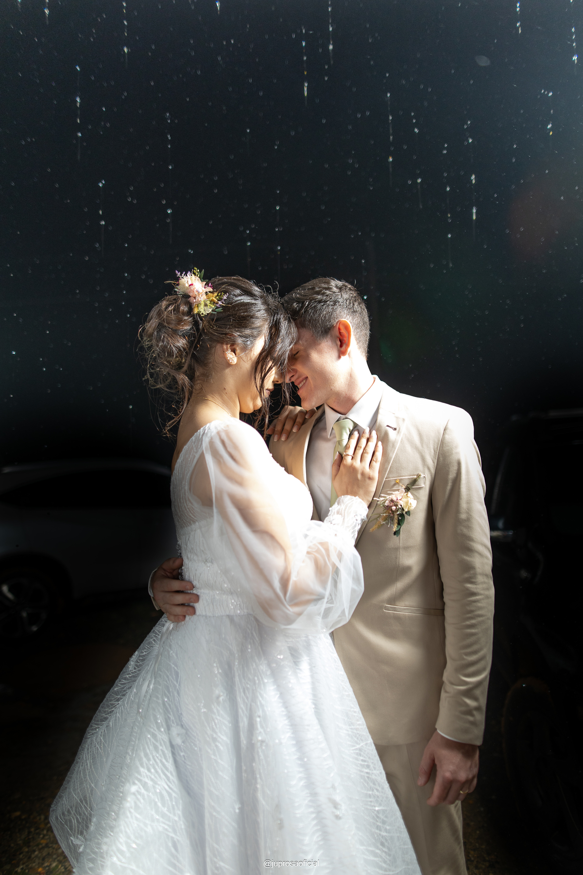 Cada clique capturou a beleza e a essência do amor, com a chuva dando um toque especial e romântico ao grande dia.