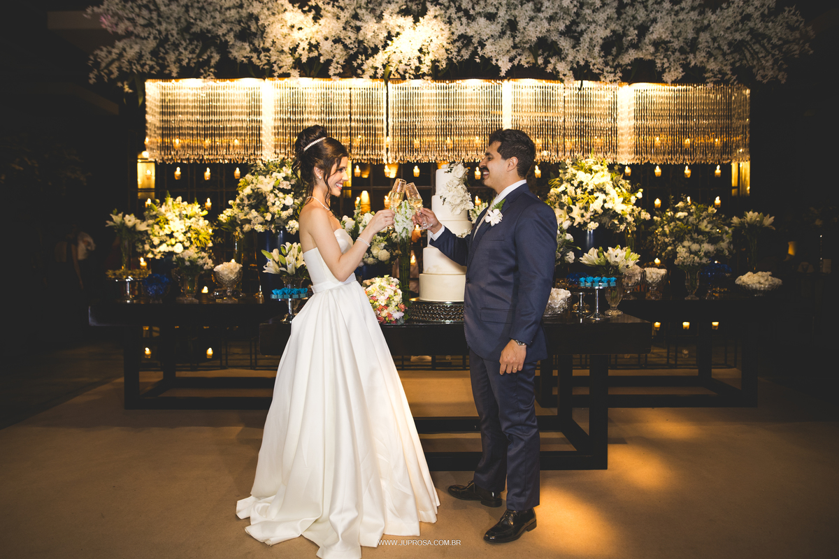 Depois, a celebração no Espaço Viena foi um espetáculo à parte: uma decoração impecável assinada por Allyson Paiva, o cerimonial impecável da Carine – Glamour Cerimonial, e o buffet maravilhoso do Cia de Festa by Autieri, que completaram o cenário de uma noite inesquecível.
