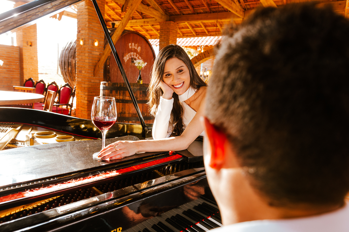 Um cenário digno de romance italiano, uma luz dourada de fim de tarde e um casal cheio de sintonia.
